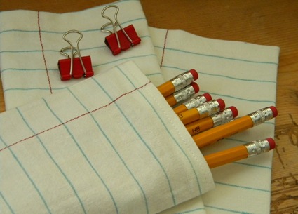 I stitched up a few of these simple bags to use as pencil holder bags. Super easy - I opted for no zipper so a cute red binder clip keeps the bag closed. The bags can be used as a pencil supply bag or gift bags to hand out to friends at school.