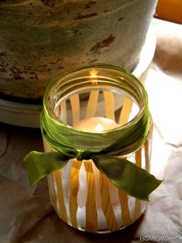 Cut free form strips and make a votive using an old jar.