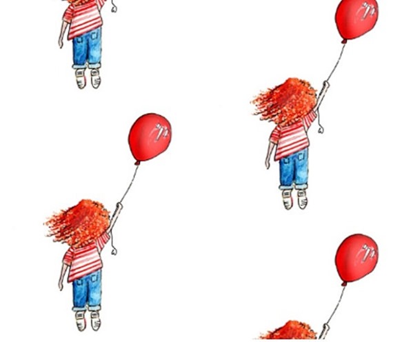 I painted this picture in memory of that beautiful little boy Ryan with those delicious red curls swaying in the wind as he travels towards Jesus. It was only appropriate that he would be holding a red balloon, as it has become his symbol.